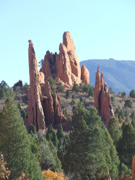 Believe it or not, we are actually on our third set of Rocky Mountains! The second set had about 30 million years to erode before this third set began to form between 35 and 7 million years ago. The Pikes Peak Batholith (a very large igneous body) was forced up through the overlying rock. Much the same as the earlier orogeny, the sedimentary layers were bent, broken, and eroded away. The layers of sedimentary rock were tilted completely (or very nearly) vertical when the Pikes Peak Batholith punched through them. Inter-bedded layers of shale eroded away over time while the more durable sandstone ridges, the tallest reaching over 320 feet high, have resisted erosion for millions of years. The result of this process was not only the current Rocky Mountains and Pikes Peak, but the geologic phenomena which helped to establish Garden of the Gods as a National Natural Landmark in 1972.