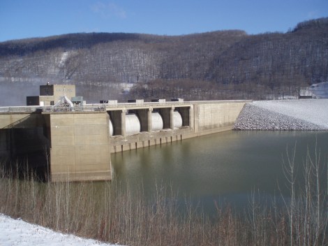 The first stop was to Piney Dam, located on the Clarion River. Piney is a 700-foot-long combination arch and gravity dam that was constructed in the early 1920s with the purpose of producing hydroelectric power. Though it may have appeared old and crumbling, this dam was ironclad. Its thickness alone is enough to withstand the combination of upstream water pressure and ice thrust, it gains additional stability through its massive arch which abuts against the rock banks of the valley. Many other features were constructed to prevent failure of any type, including a spillway capable of discharging a flood over twice as great as any in recorded history along the river.
