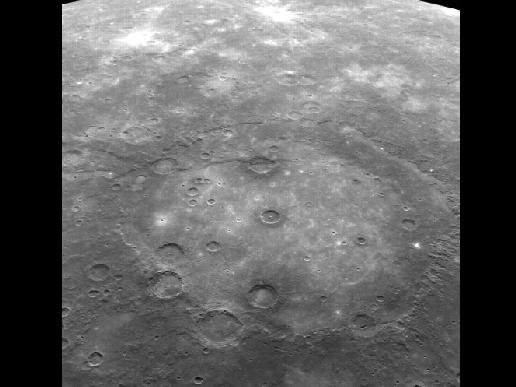 Rembrandt Crater (photo via NASA’s MESSENGER spacecraft; August 7, 2011)