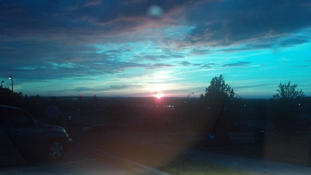 At 8:45 pm, just minutes before sunset, the clouds around the sun parted and gave a clear shot. There it was. Venus, a little less than halfway through its transit. We could clearly see it silhouetted against the red canvas of the sun. It was a sight to behold. And yet, only three other people were at, what we felt, was the best place around to see it. The vast majority, which we saw driving around below us, busy running errands, driving home for dinner, and walking into the movie theatre, had no clue this was even happening. That a much better show was happening right in front of them! While it made me a little sad, I also felt privileged to have witnessed something so amazing. I can only hope that, come the next transit 105 years from now, those numbers are reversed.