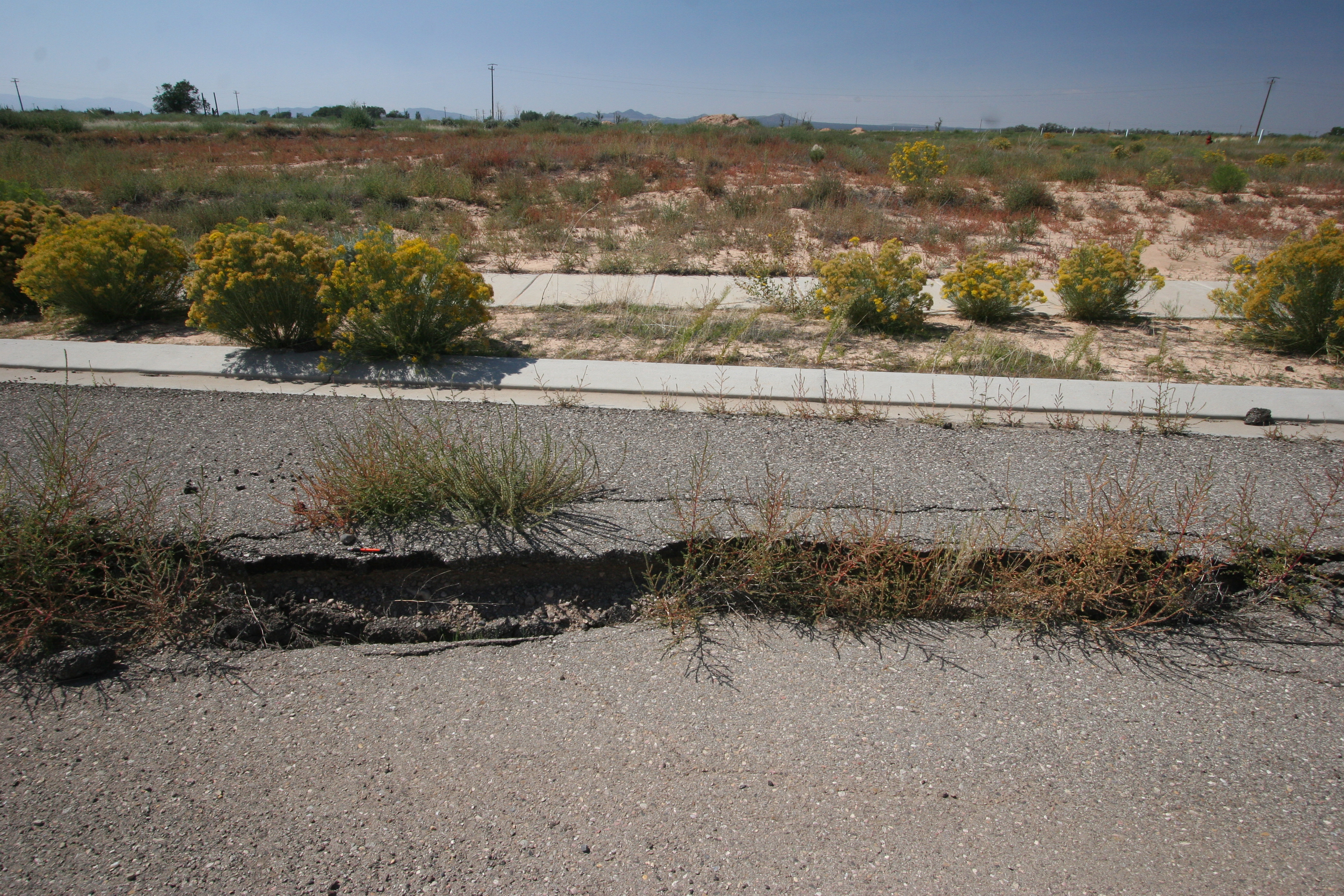 Earth Fissure down the middle of an abandoned street. Outside Cedar City, UT (bag-o-chips for scale).