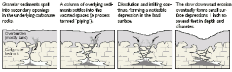 Progression diagram of a Cover-Subsidence Sinkhole (USGS)